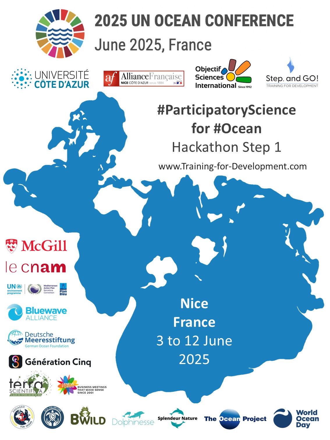 🚀 Are you passionate about the ocean, science, innovation, or the environment? Do you want to work on a concrete project, collaborate with experts from around the world, and present your ideas at a UN conference? Don’t miss the Hackathon "Participatory Science for Ocean," which will take place from June 3 to 12, 2025, in Nice, alongside and inside the 3rd UN World Ocean Conference (UNOC)!